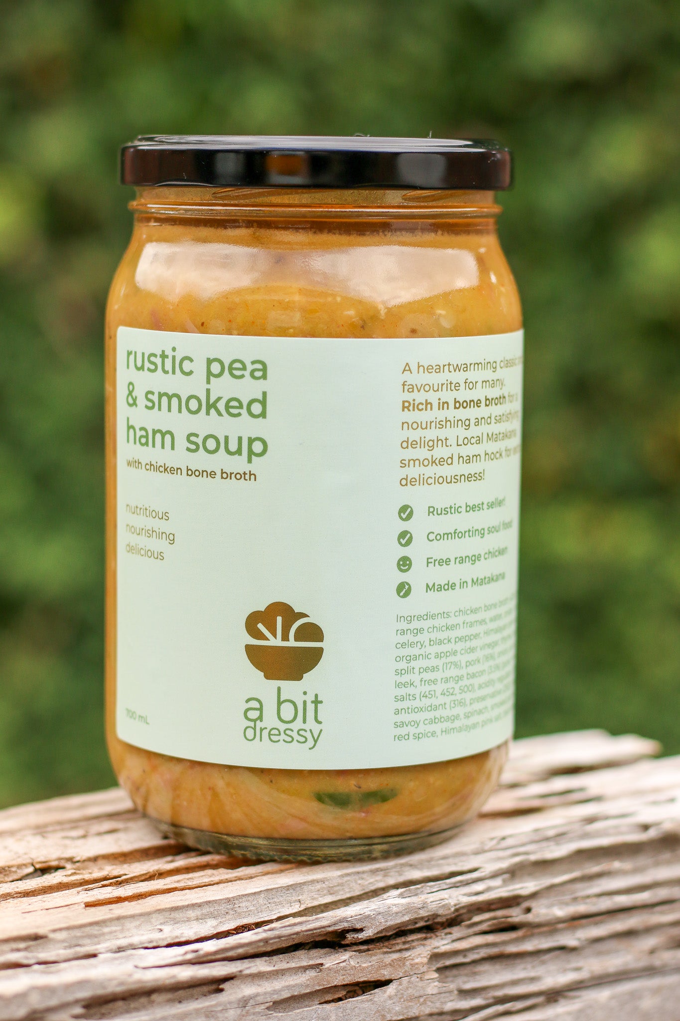 Why not indulge in the heartwarming flavours of our rustic split pea & Smoked Ham w chicken bone broth, a classic kiwi favourite for many!